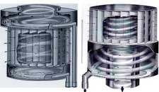 These are centrifugal separators that cause the gas stream to enter a controlled centrifugal flow. This action forces the entrained liquids and solids to the outer wall of the internal separator where they fall to a bottom drain. The exit stream is drawn from the clean and dry center of the separator and that assures a clean and dry gas stream at the outlet. The Type 60-I has an upflow configuration while the 70-I has a downflow configuration. Both are fabricated from carbon steel and have 304L stainless steel blades.